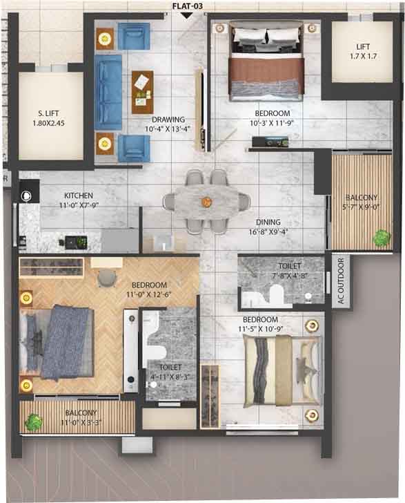 This is a 3 BHK apartment for sale in Stalwart Sky City, a popular residential project that houses in-demand flats in Patia, Bhubaneswar. Containing 3 bedroom(s), 2 bathrooms and 2 balconies, this flat is spread over a Super built up area of 1565 sq.ft. This flat is situated on the 9th floor of this 35 floors tall residential building. This residential property is still under construction and will be available for possession by March 2028.