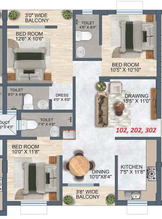 Constructed on a Super built up area of 1574 sq.ft., the flat comprises 3 bedroom(s), 3 bathrooms and 1 balcony. The flat has a total of 4 floors and this property is situated on 3rd floor. This residential flat is currently under construction and you can expect the possession of the same by 2028.